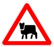 Этот знак имеет обычную для предупреждающих знаков форму треугольника белого цвета с красной окантовкой, на котором изображён силуэт коровы.